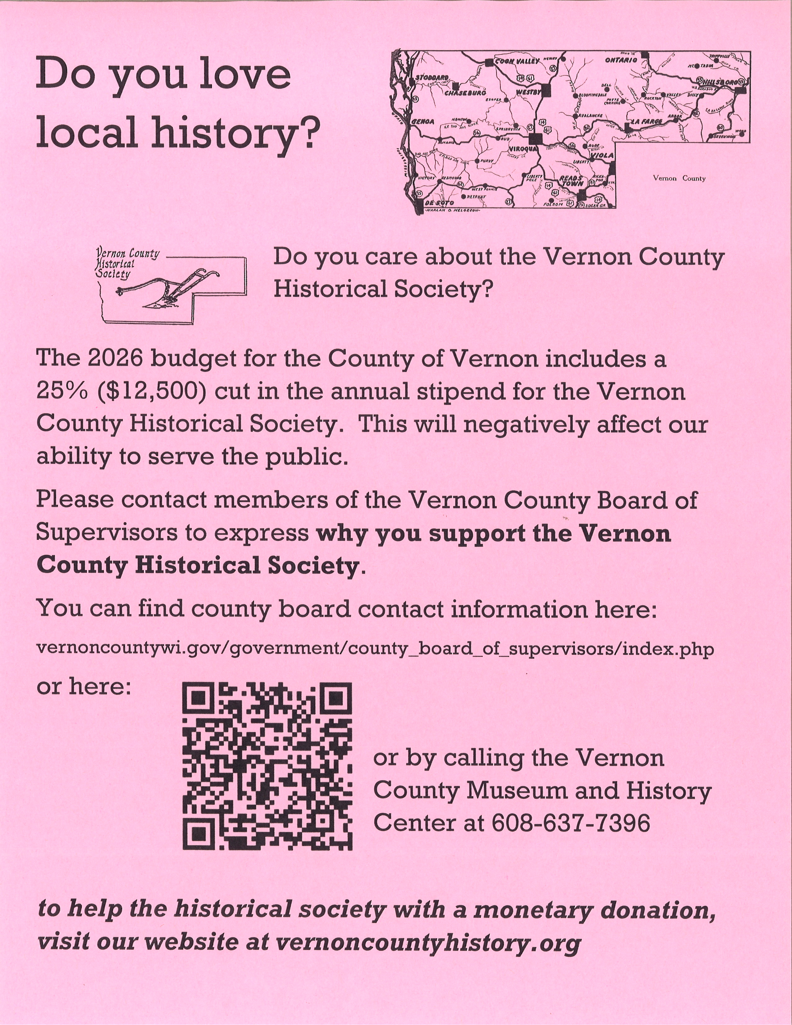 The Vernon County Board cut our funding 25% in 2026. Contact