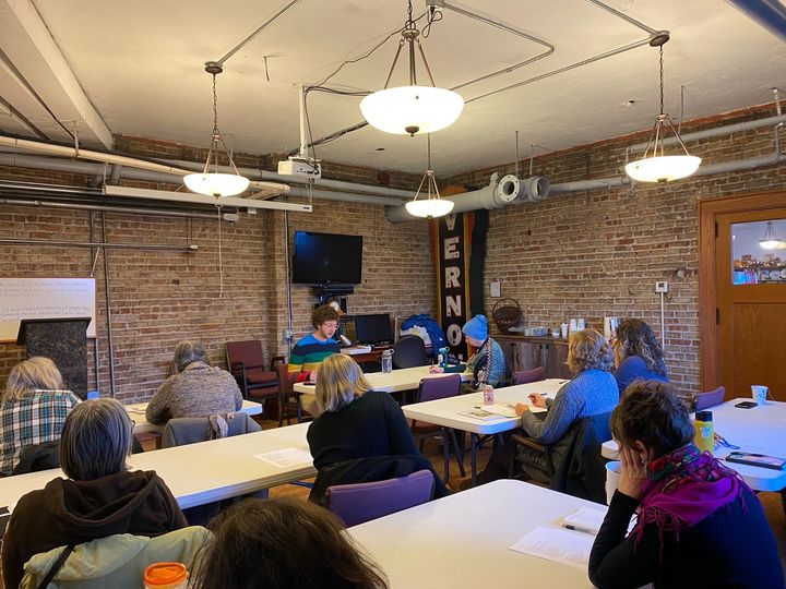 This room is on the first floor of the building, just a few steps from the main door to the parking lot. The building is handicapped-accessible, including a large, single-occupant bathroom.